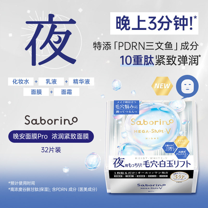胶原焕肤早安面膜PRO白玉美容PDRN三文鱼紧致 BCL日本Saborino保湿由