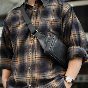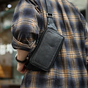 真皮胸包简约通勤单肩斜挎包植鞣牛皮小腰包手机小包 佐也原创男士由
