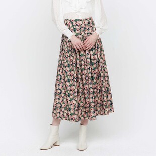 sdeer圣迪奥春秋装 文艺优雅高腰印花碎褶A字伞裙S233Z1175 女装由