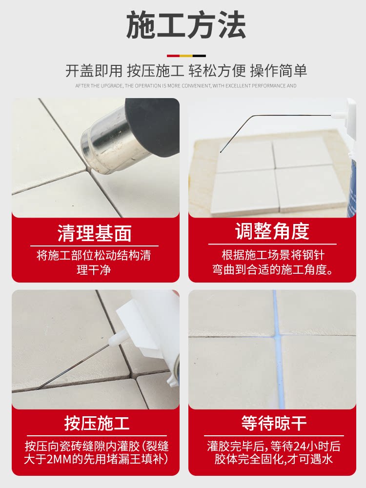 为您提供商品卫生间防水补漏材料浴室免砸砖渗透剂透明涂料瓷砖缝隙堵王填缝胶的详细介绍,