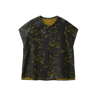 一丝牵 上衣100%桑蚕丝提花上衣 四经绞罗真丝香云纱花萝立领短袖由