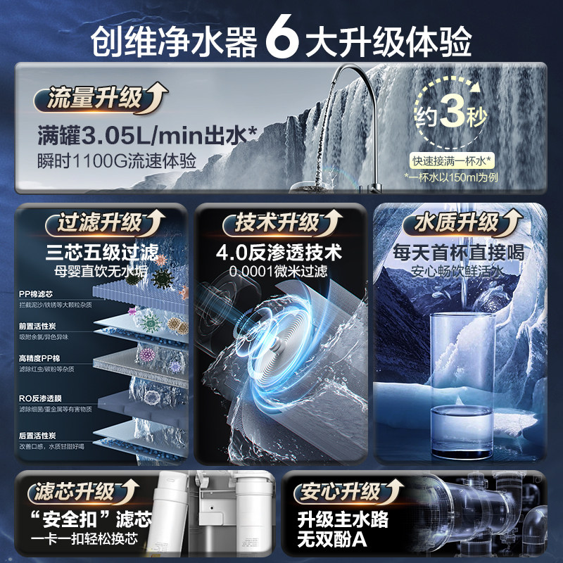 为您提供商品创维净水器家用直饮厨房自来水加热一体1100G流速净水管线机套餐的详细介绍,