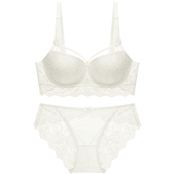 好奇蜜斯蕾丝法式 白三角杯小胸 内衣女美背性感夏薄纯欲文胸罩套装