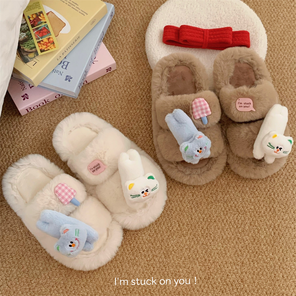 外穿防滑厚底居家全包跟加绒保暖棉鞋 秋千 女冬季 可爱米菲兔棉拖鞋