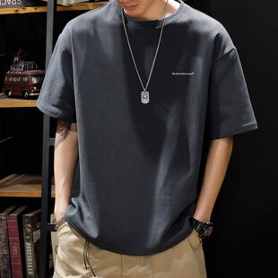 胖子厚款 重磅纯棉短袖 t恤男夏季 ins潮牌宽松大码 衣服情侣体恤 半袖