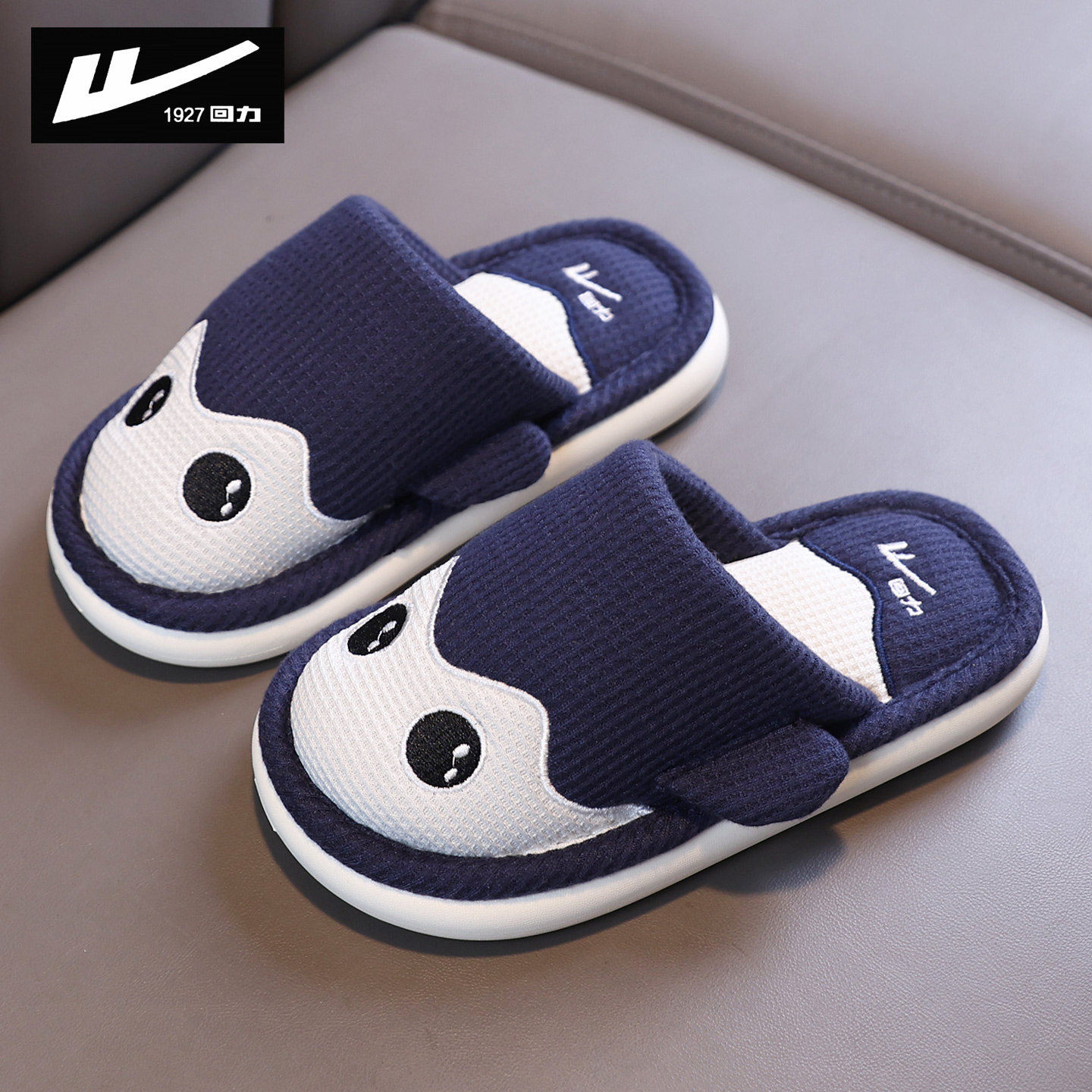 回力儿童棉拖鞋 薄款 男童女宝宝可爱卡通猫咪防滑大童拖鞋 春秋冬季
