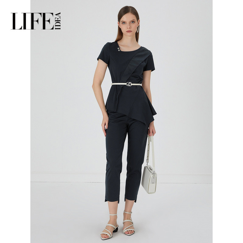为您提供商品上衣女夏不规则斜领通勤风1E2S23068 莱芙艾迪儿拼接荷叶边法式的详细介绍,