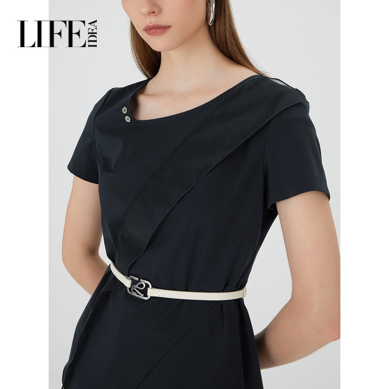 上衣女夏不规则斜领通勤风1E2S23068 莱芙艾迪儿拼接荷叶边法式由