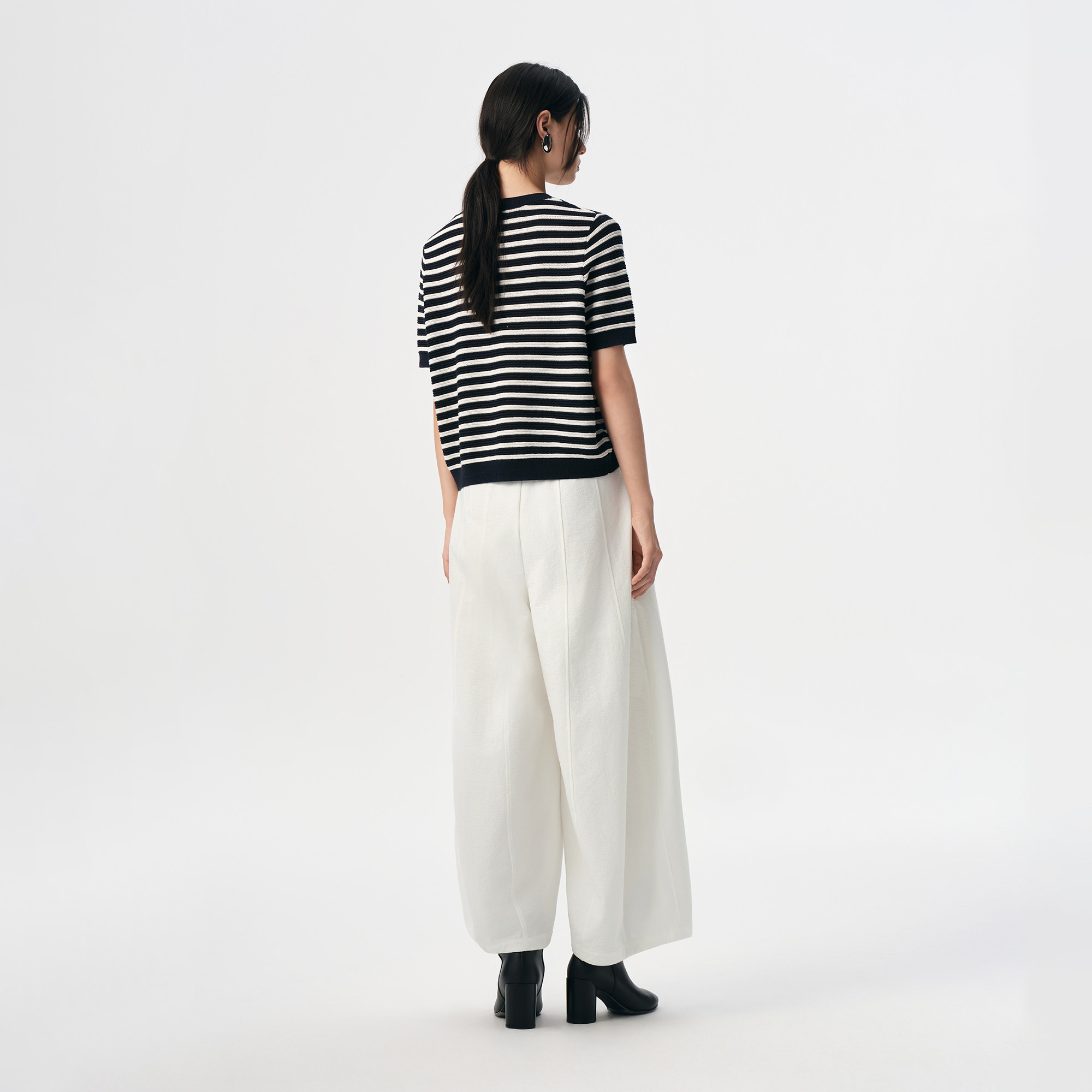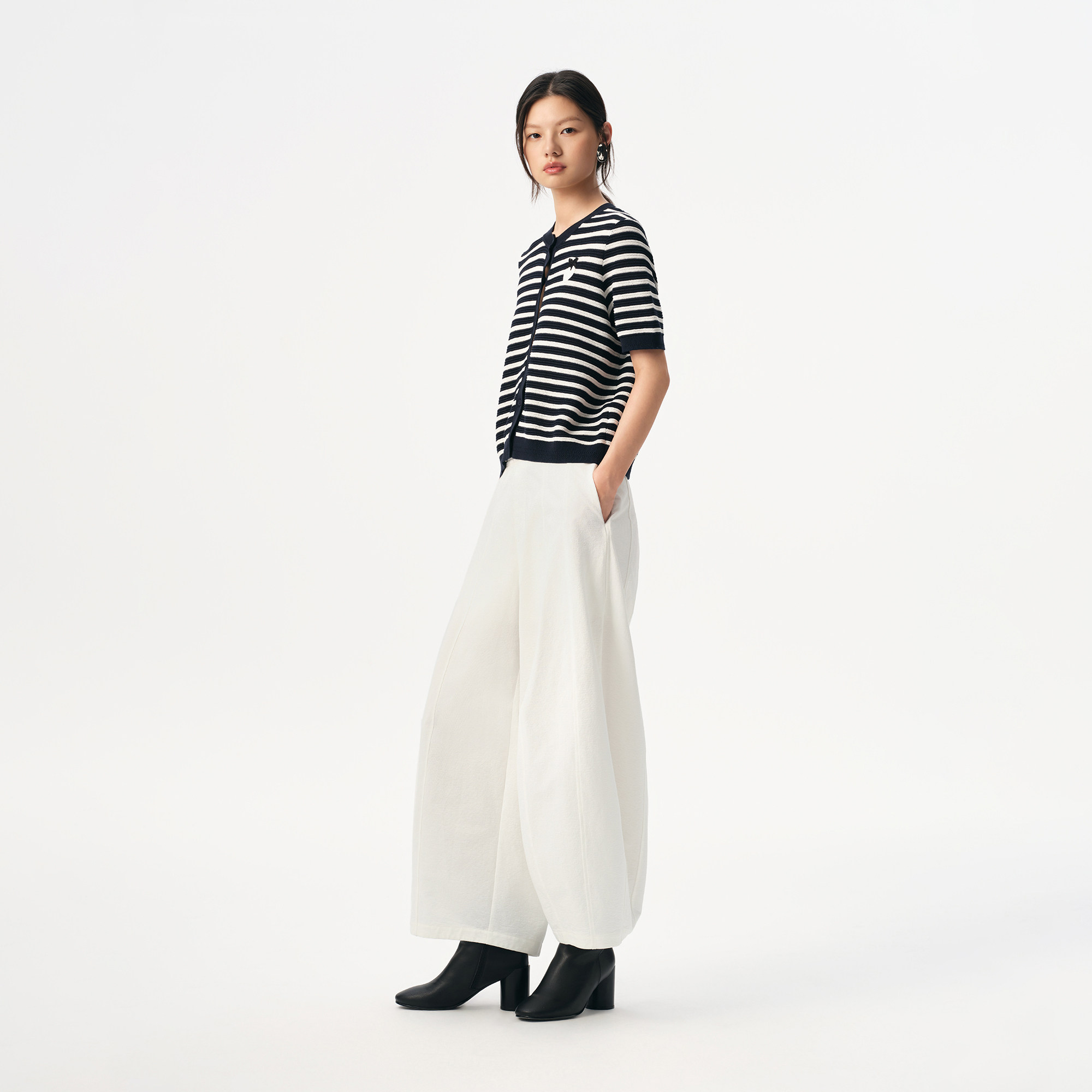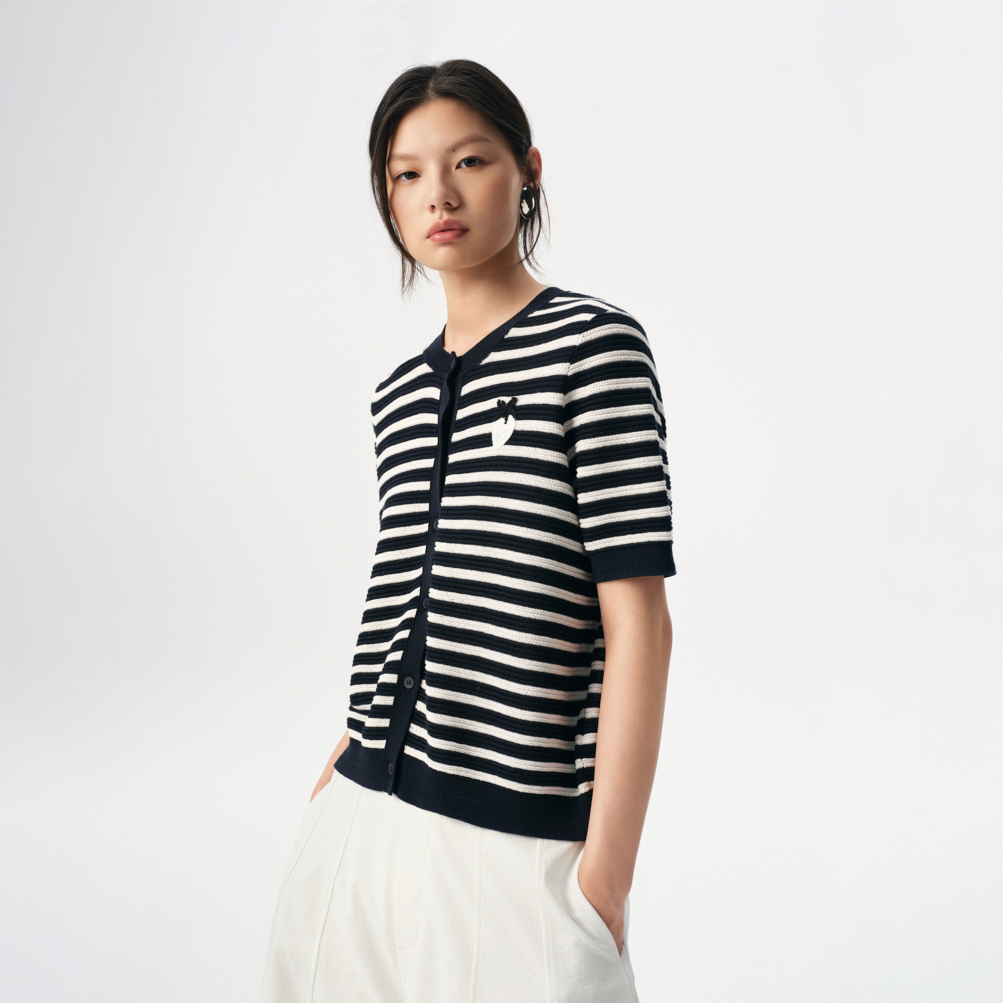 女秋季 播商场同款 正肩条纹短袖 针织衫 宽松上衣BDS3UD3703 新款