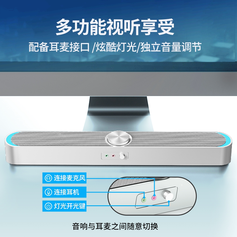 桌面usb电竞蓝牙有线长条喇叭麦克风多媒体音箱 电脑音响家用台式