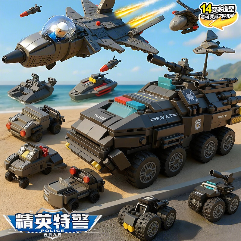 甲车积木坦克益智拼装 图男孩玩具儿童生日礼物 防爆特警装 2026新款由
