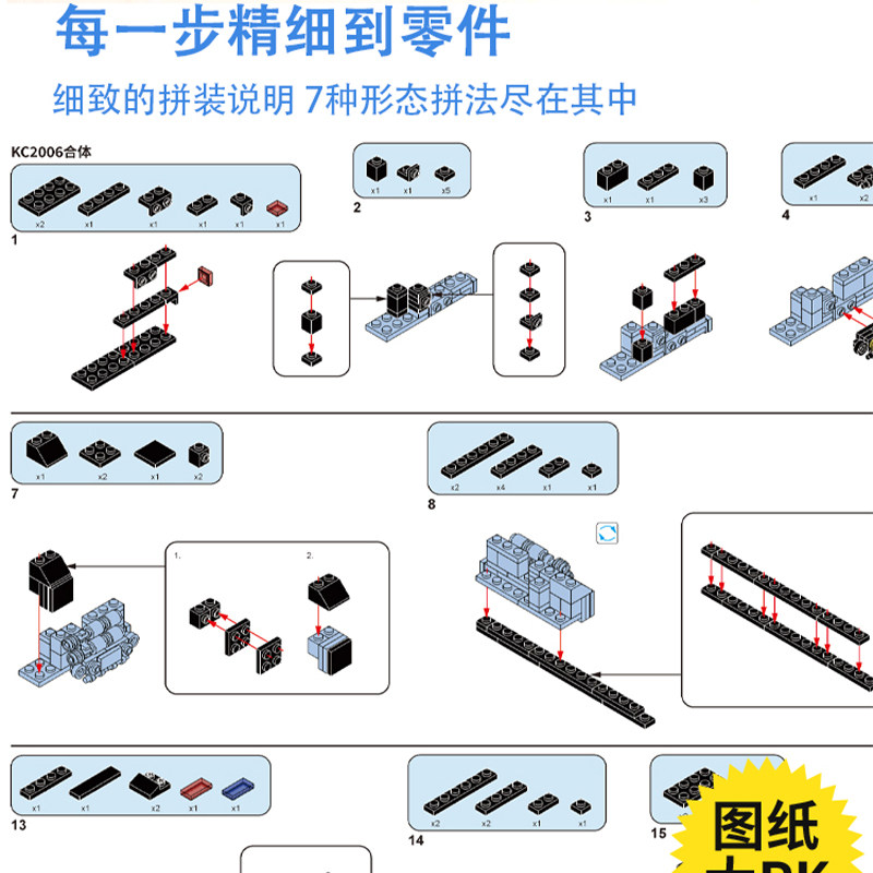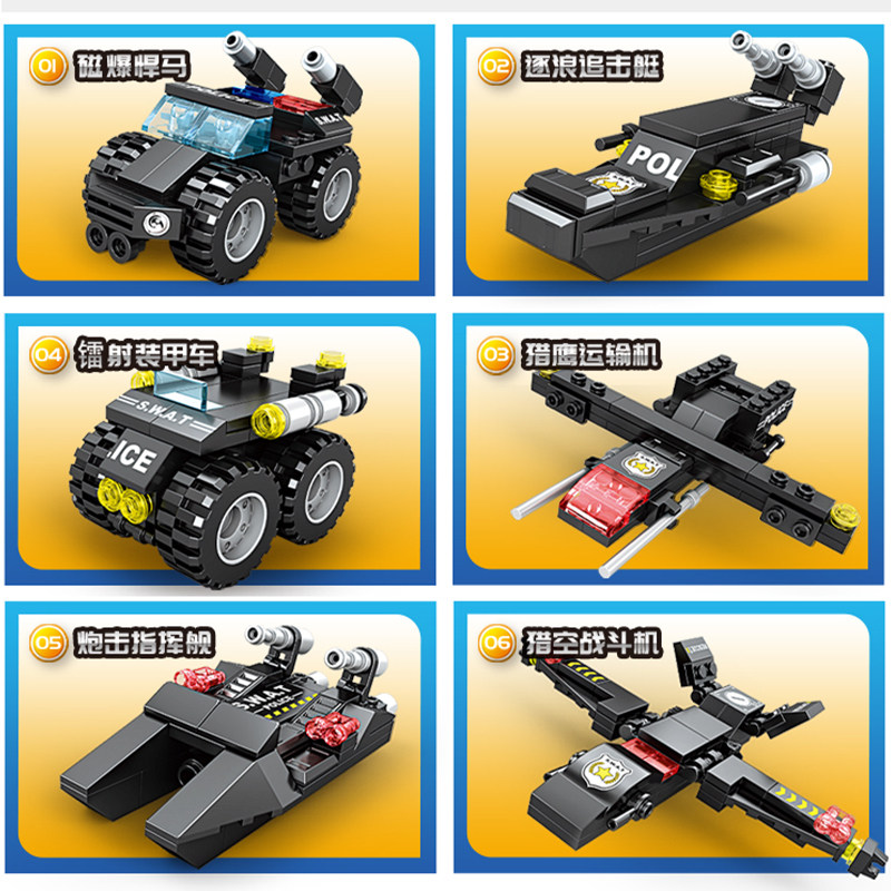 新款 积木玩具机器人普通塑料积木 森宝钢铁机甲积变大力神6合1拼装