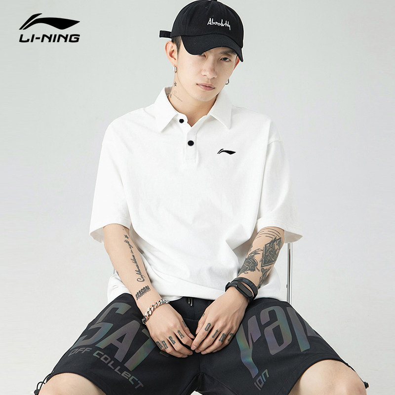 纯色透气休闲短袖 李宁Polo衫 男款 夏季 翻领棉T恤 运动速干上衣时尚