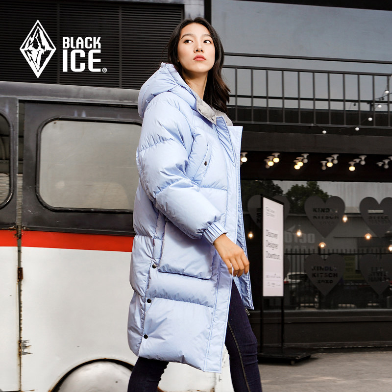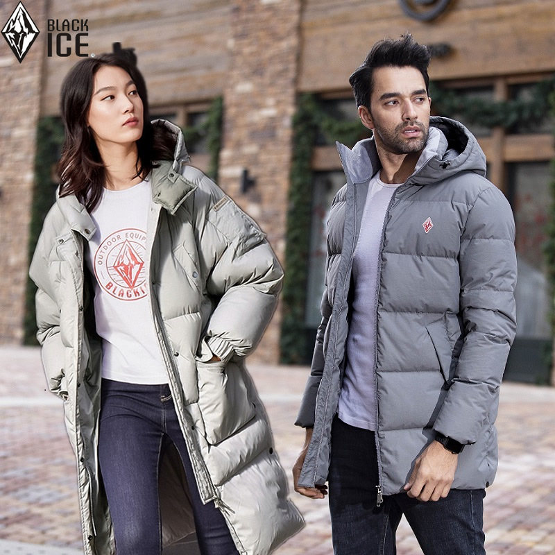 黑冰天璇长款 加厚鹅绒防水羽绒连帽大衣F8516 羽绒服F8526男女冬季