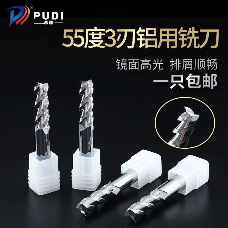 3刃55度铝用铣刀钨钢合金立铣刀铣铝合金专用高光加长CNC数控刀具由
