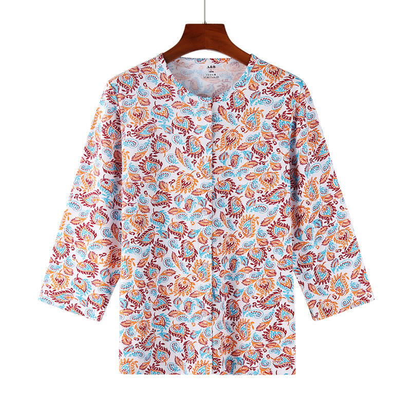 AB内衣纯棉七分袖 女夏薄中老年人宽松大码 夏装 家居服睡衣H372 开衫
