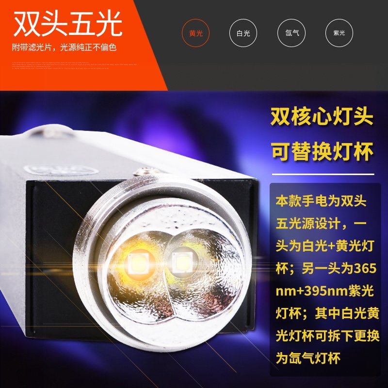 拜斯特手电筒照玉石五光源白黄紫光365nm氙气灯文玩玉石鉴定9V