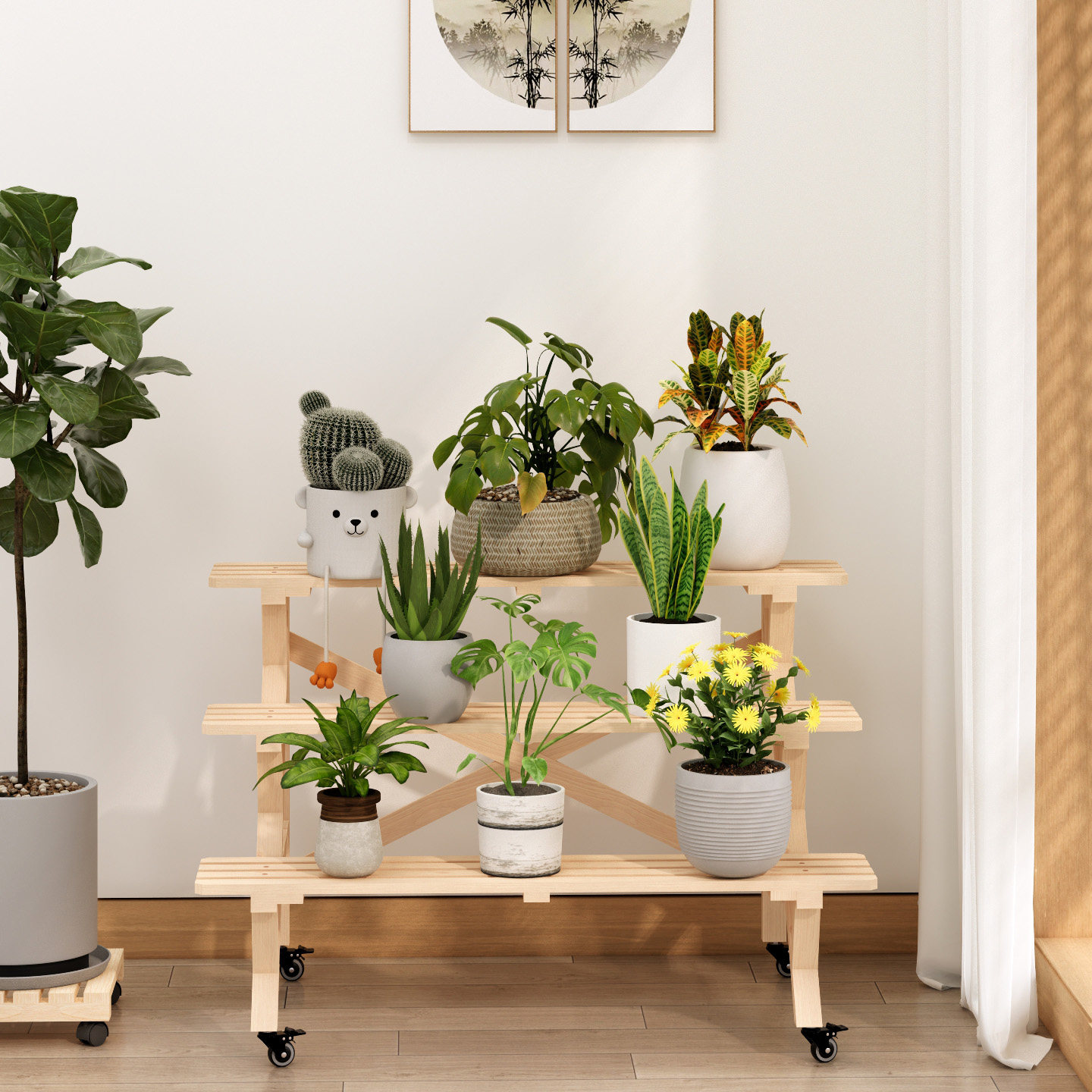 花台架绿萝架 花架子客厅阳台置物架多层钢木架北欧简约花几落地式