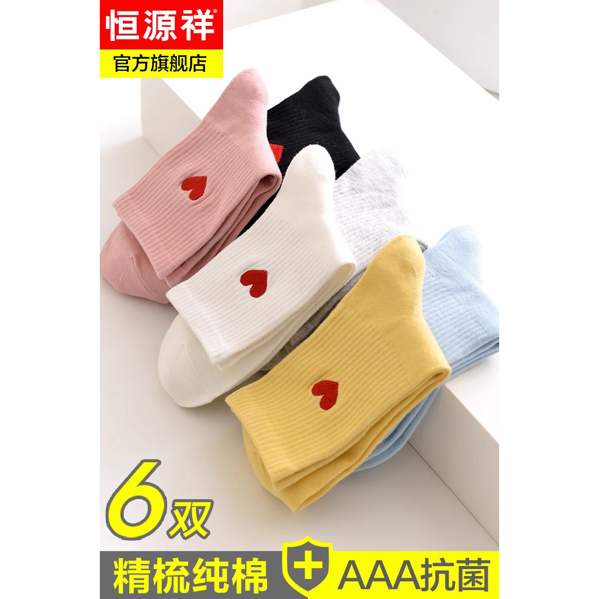 恒源祥袜子女士中筒纯棉长袜抗菌防臭透气春秋冬季 运动棉袜潮 新款