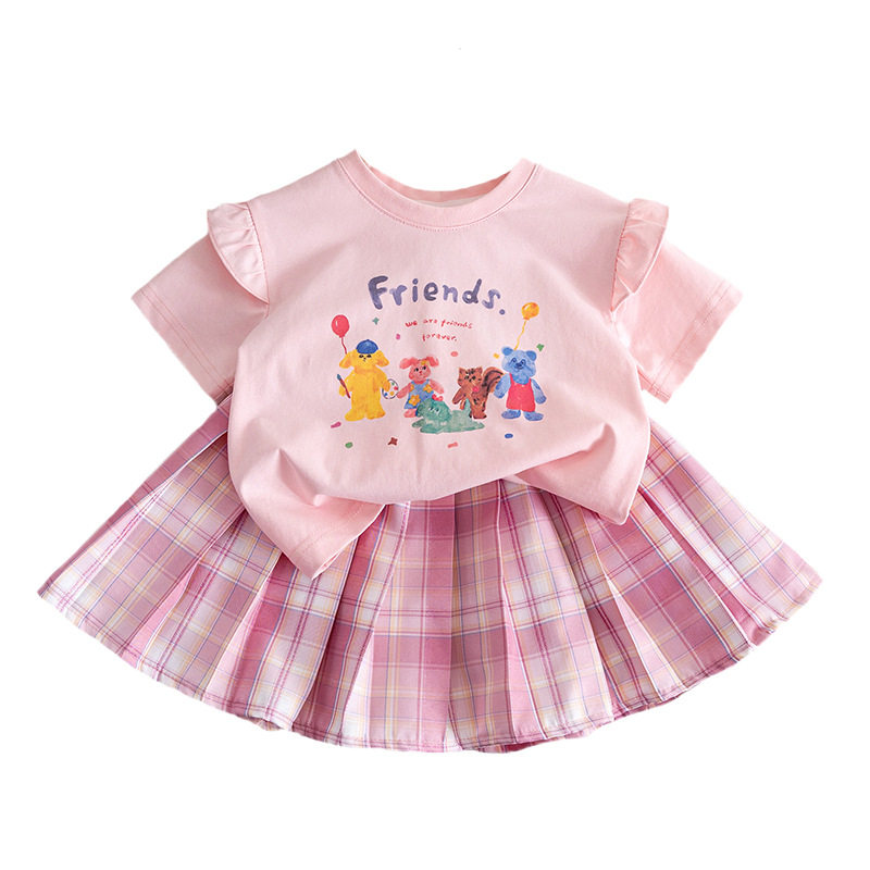 女童童趣套装 洋气时髦短袖 女宝宝夏季 裙子两件套潮 学院风儿童夏款由
