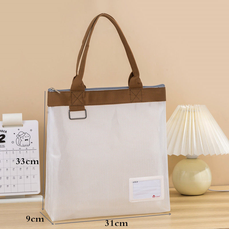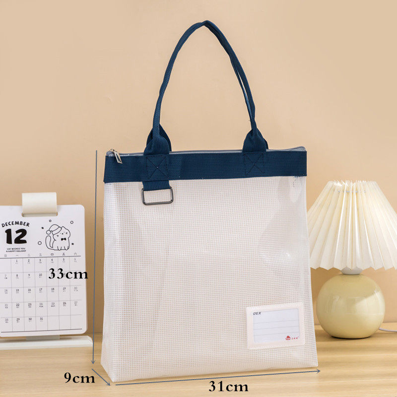 小学生初中生专用手提书袋高中生试卷资料书本作业袋子档案科目分类袋 双层大容量A4透明网纱文件收纳袋拉链式