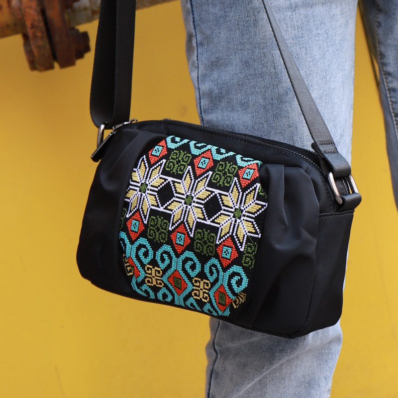 手机包大容量个性 迷你小包包多层百搭斜挎女包 刺绣小包牛津布横款