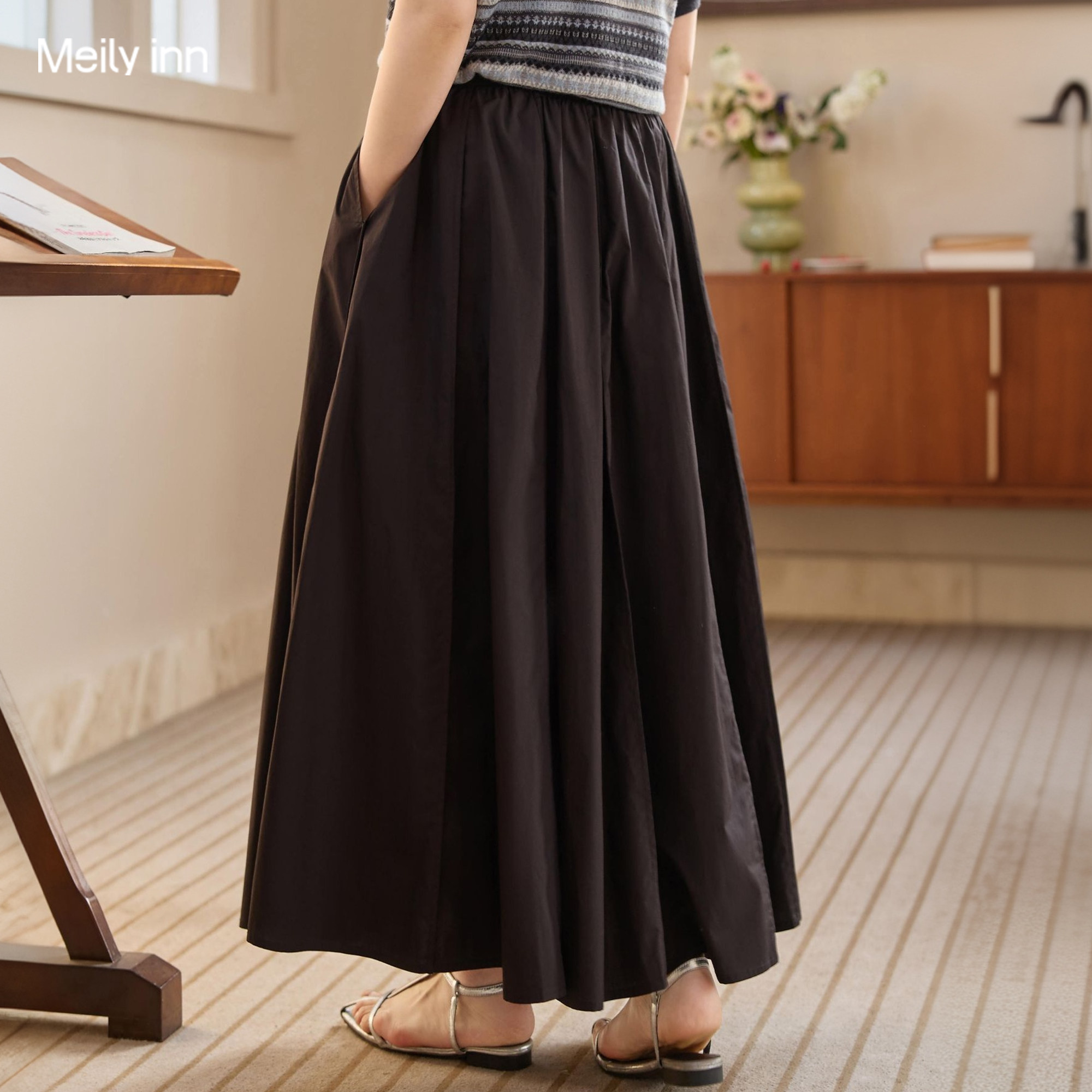 美丽客栈高端大码 遮胯显瘦中长裙 A字大摆纯棉半身裙女2026春新款由