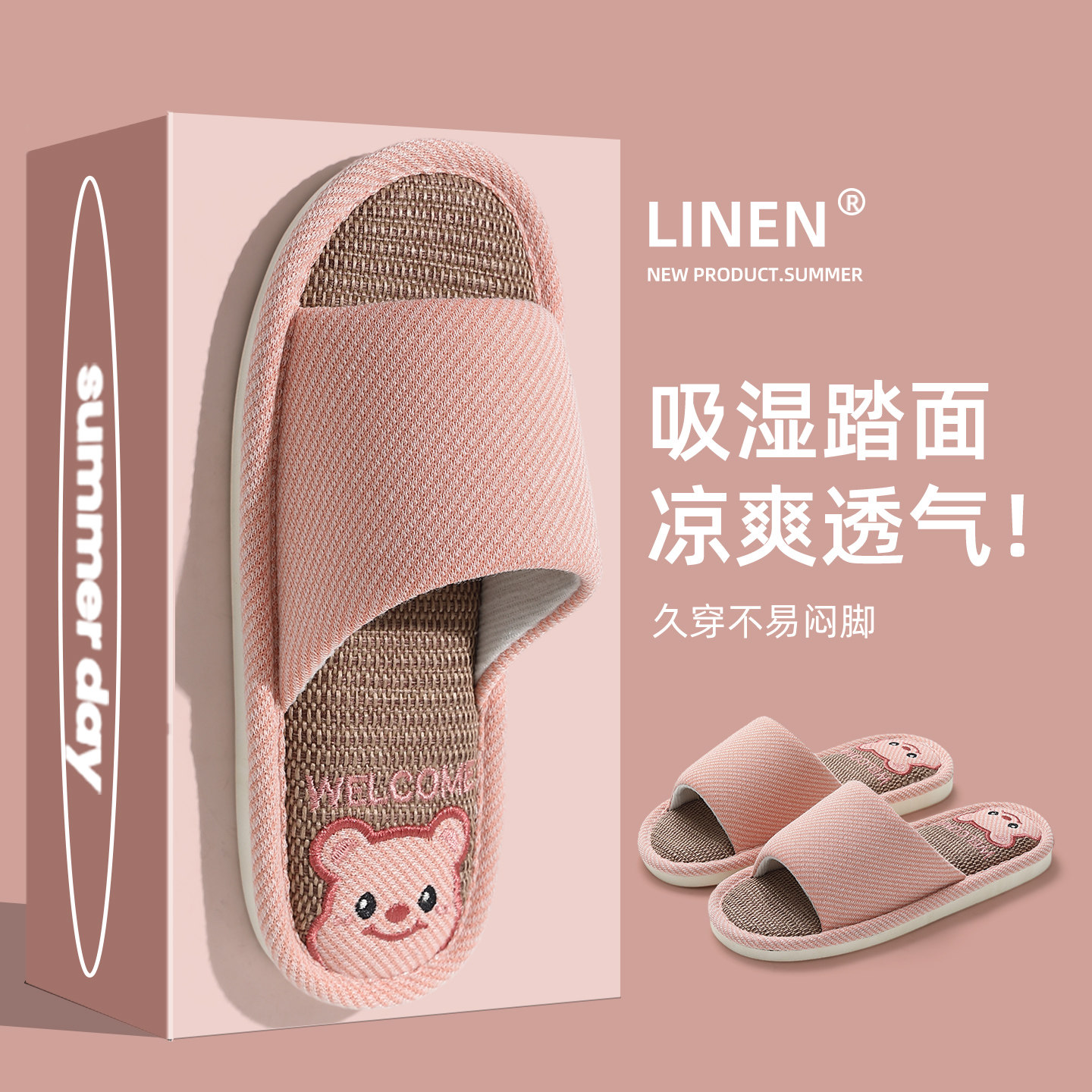夏季 2025日式 复古亚麻特价 拖鞋 室内居家透气静音防滑 情侣家居新款