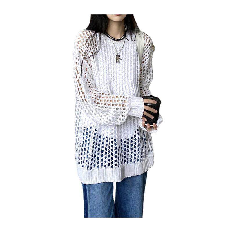 罩衫 上衣 宽松设计感小众别致独特垂感长袖 针织镂空防晒衣女薄款