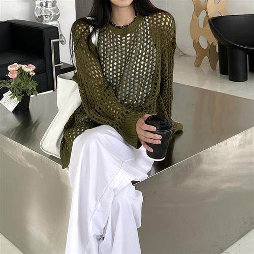 为您提供商品罩衫 上衣 宽松设计感小众别致独特垂感长袖 针织镂空防晒衣女薄款的详细介绍,