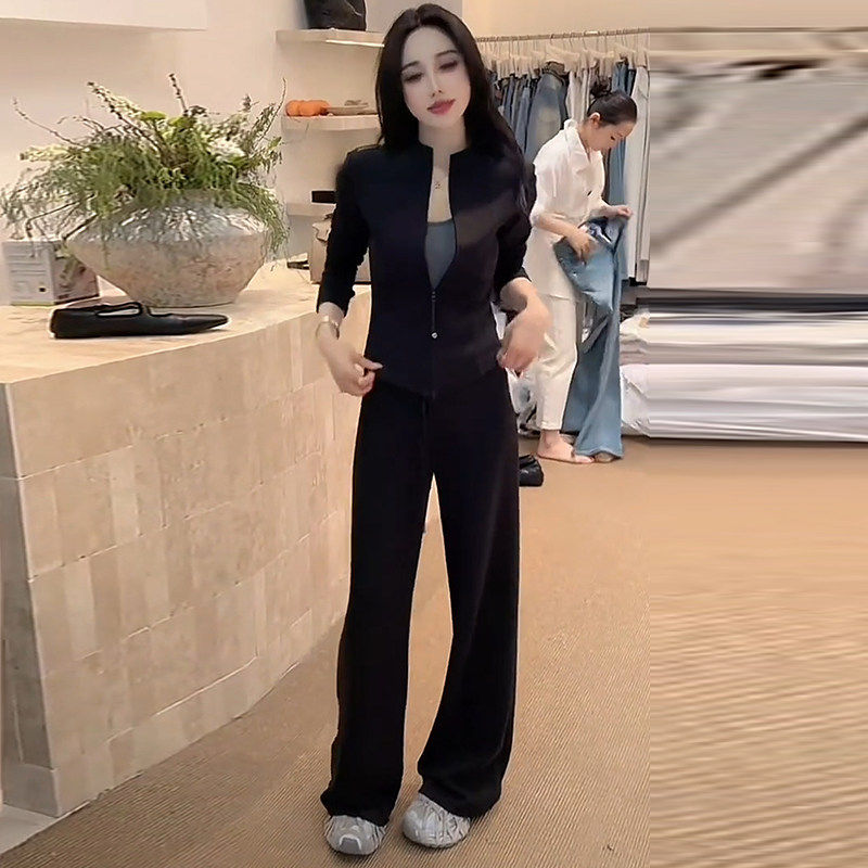 洋气显瘦立领开衫 休闲运动套装 女2026春季 新款 两件套潮 外套阔腿裤由
