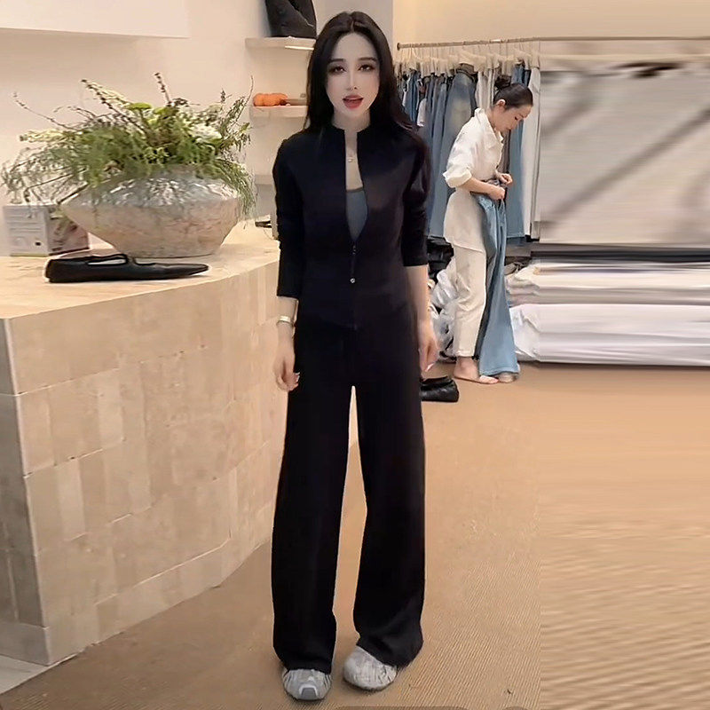洋气显瘦立领开衫 休闲运动套装 女2026春季 新款 两件套潮 外套阔腿裤