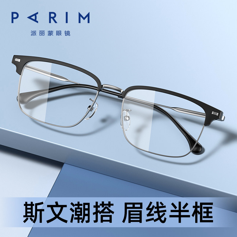 派丽蒙胖脸可配度数大码 85099 半框眼镜框商务钛架大脸眼镜男款
