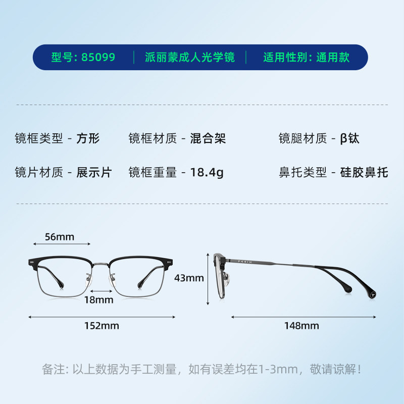 为您提供商品派丽蒙胖脸可配度数大码 85099 半框眼镜框商务钛架大脸眼镜男款的详细介绍,