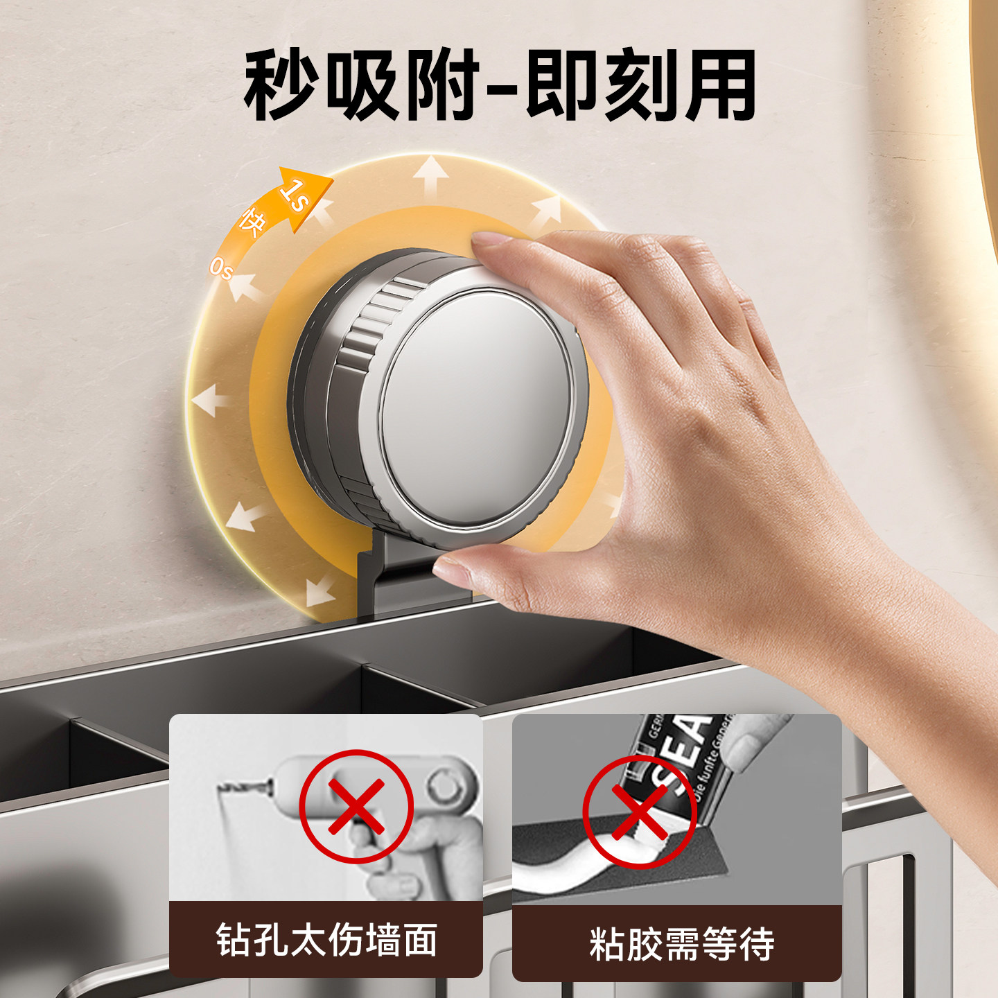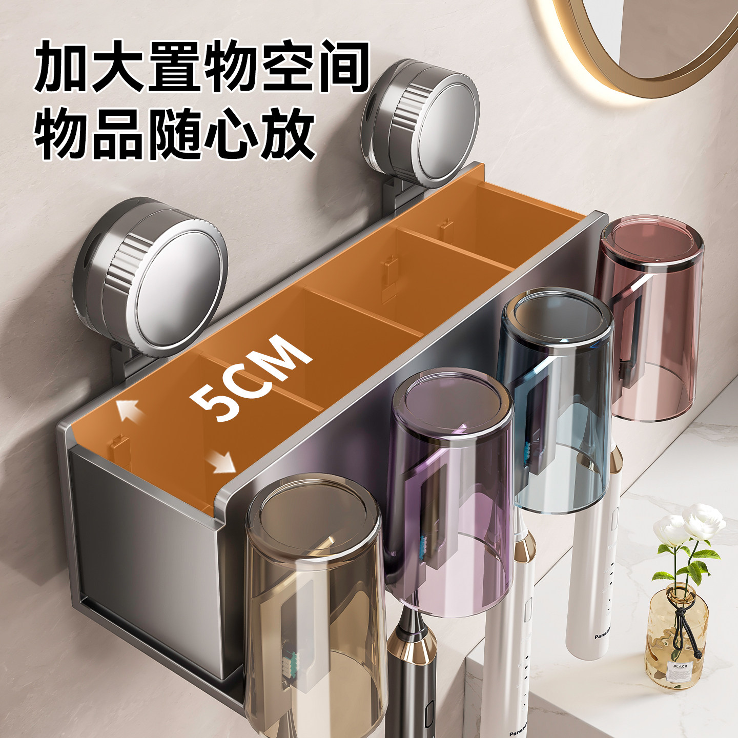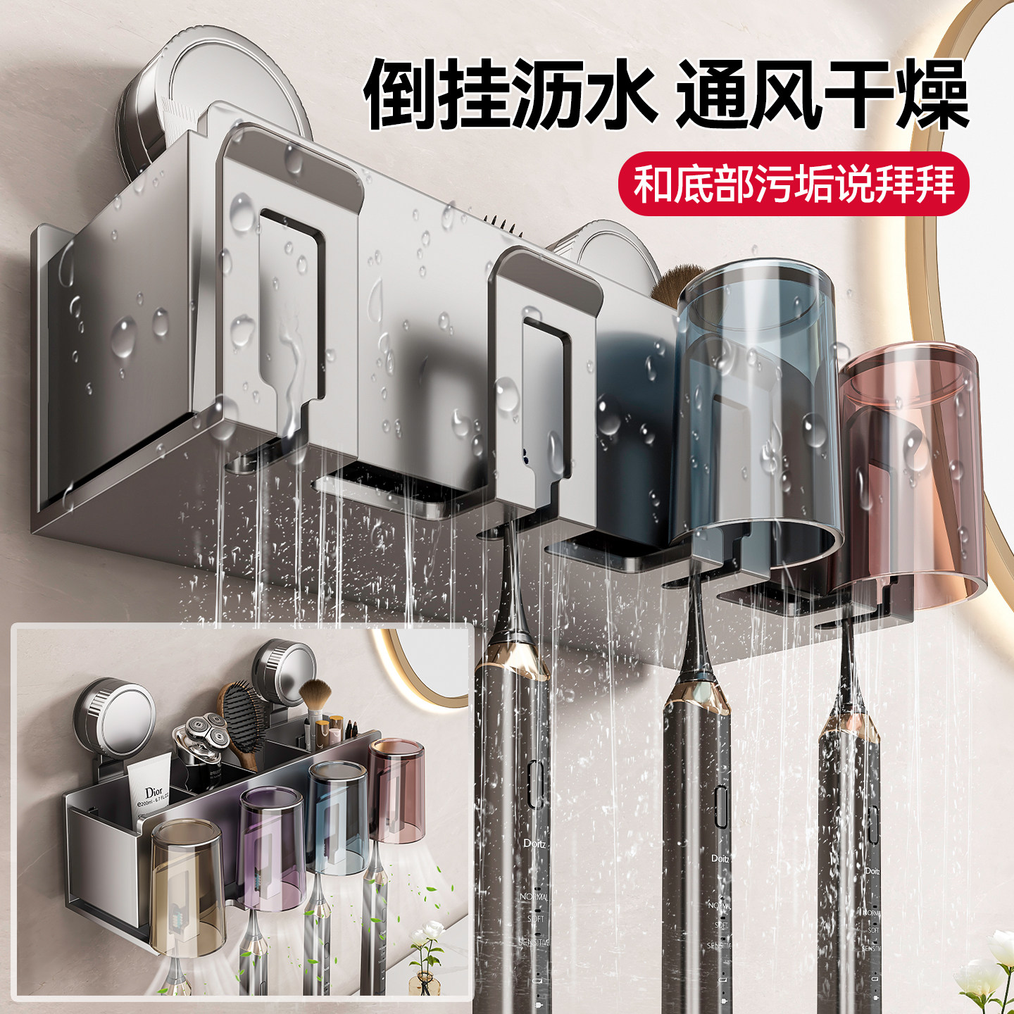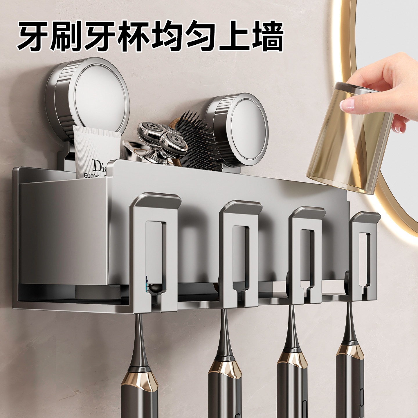 卫生间牙膏吹风机 百悍吸盘牙刷置物架漱口杯电动牙刷杯架壁挂式