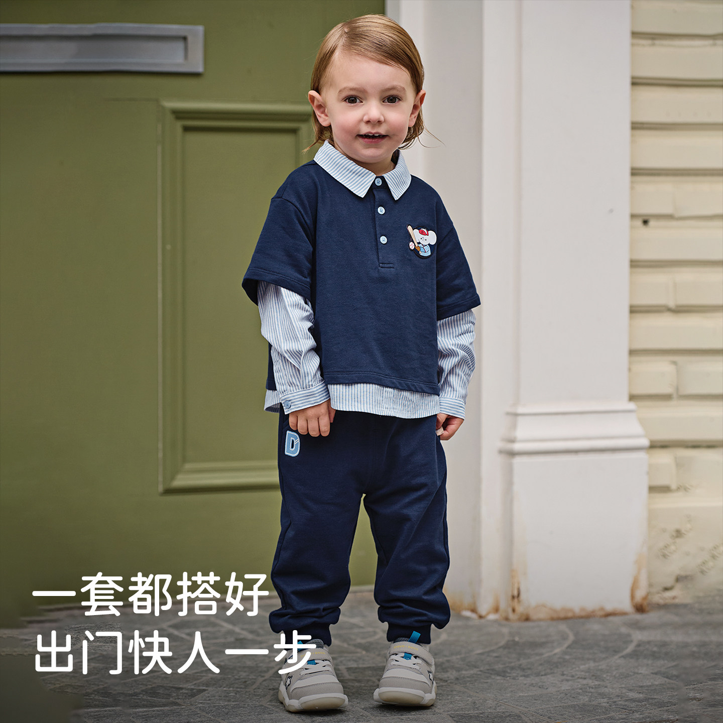 为您提供商品戴维贝拉儿童学院风套装 新款 男童假两件上衣长裤 两件套 2026春装的详细介绍,