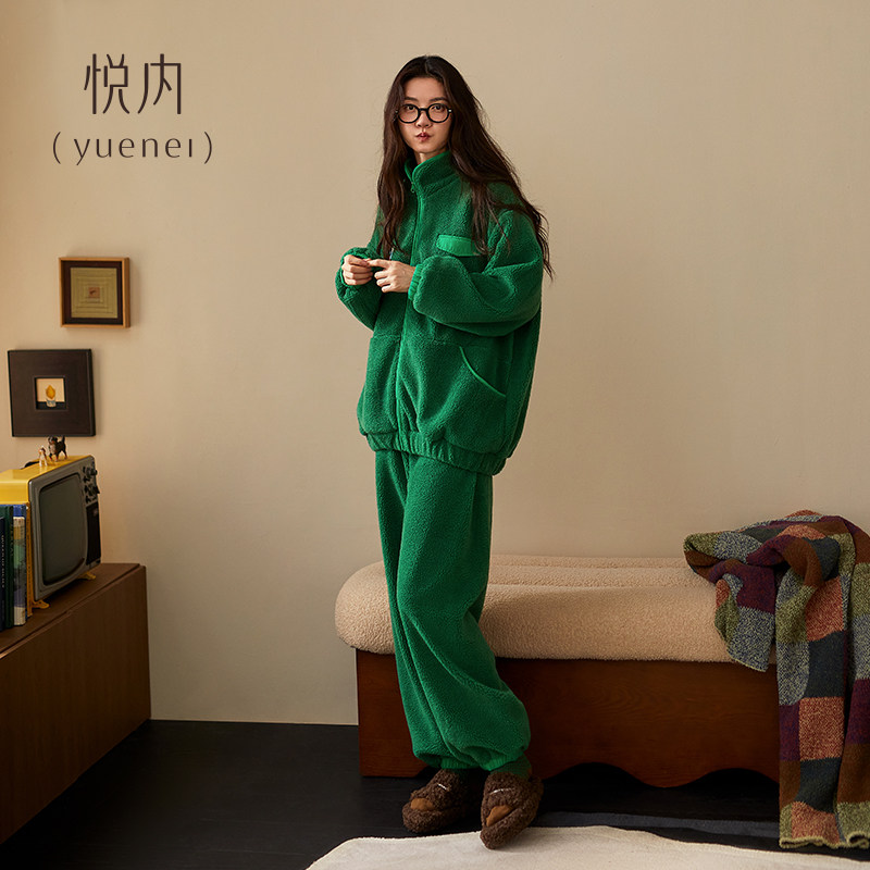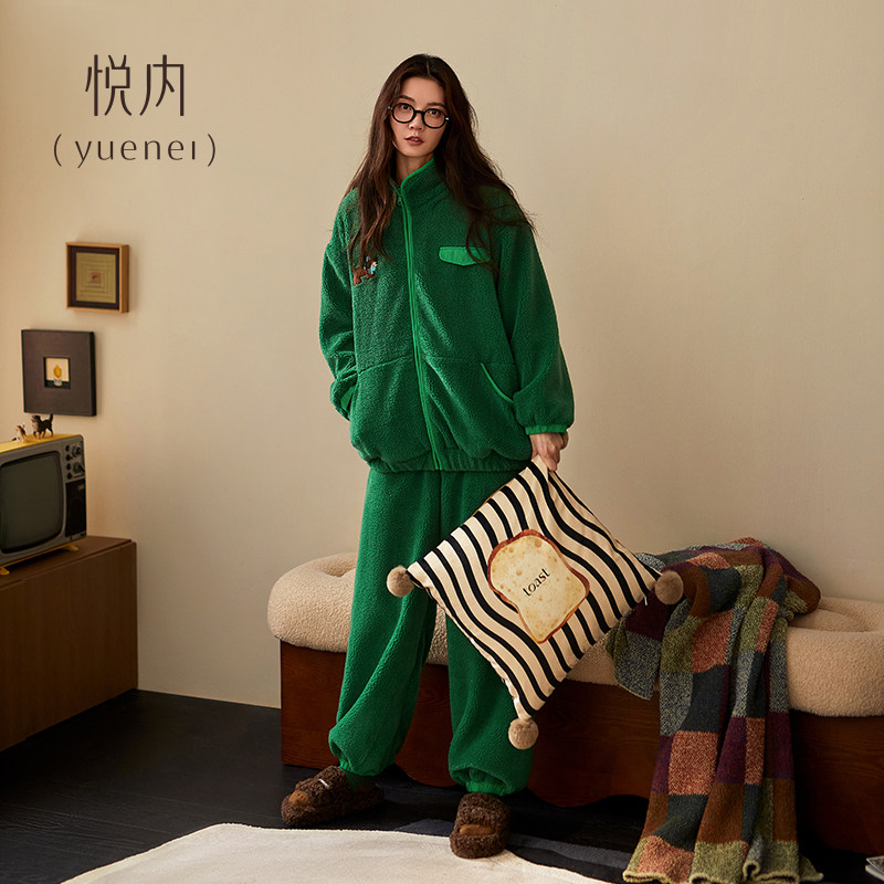 冬天法兰绒加绒加厚款 珊瑚绒保暖家居服可外穿 秋冬季 悦内睡衣女款由
