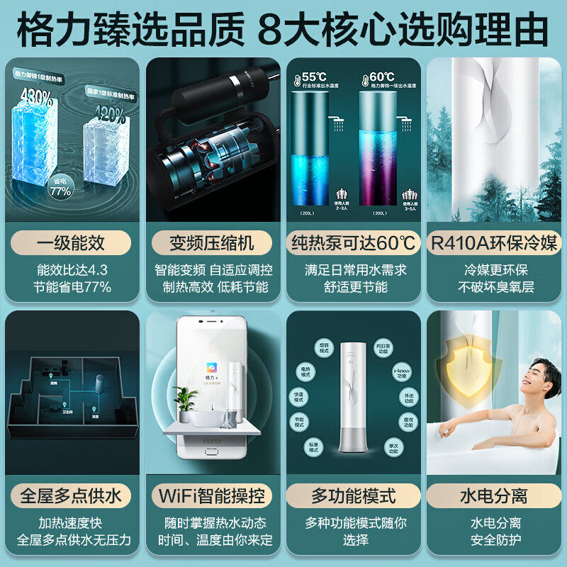 格力空气能热水器家用200升一级60℃大容量变频空气源热泵御锦