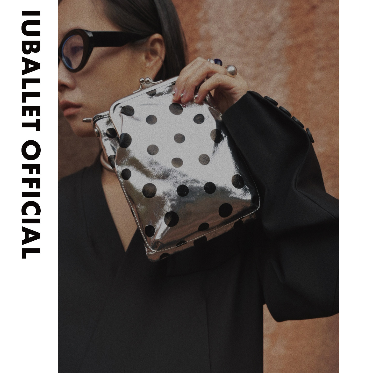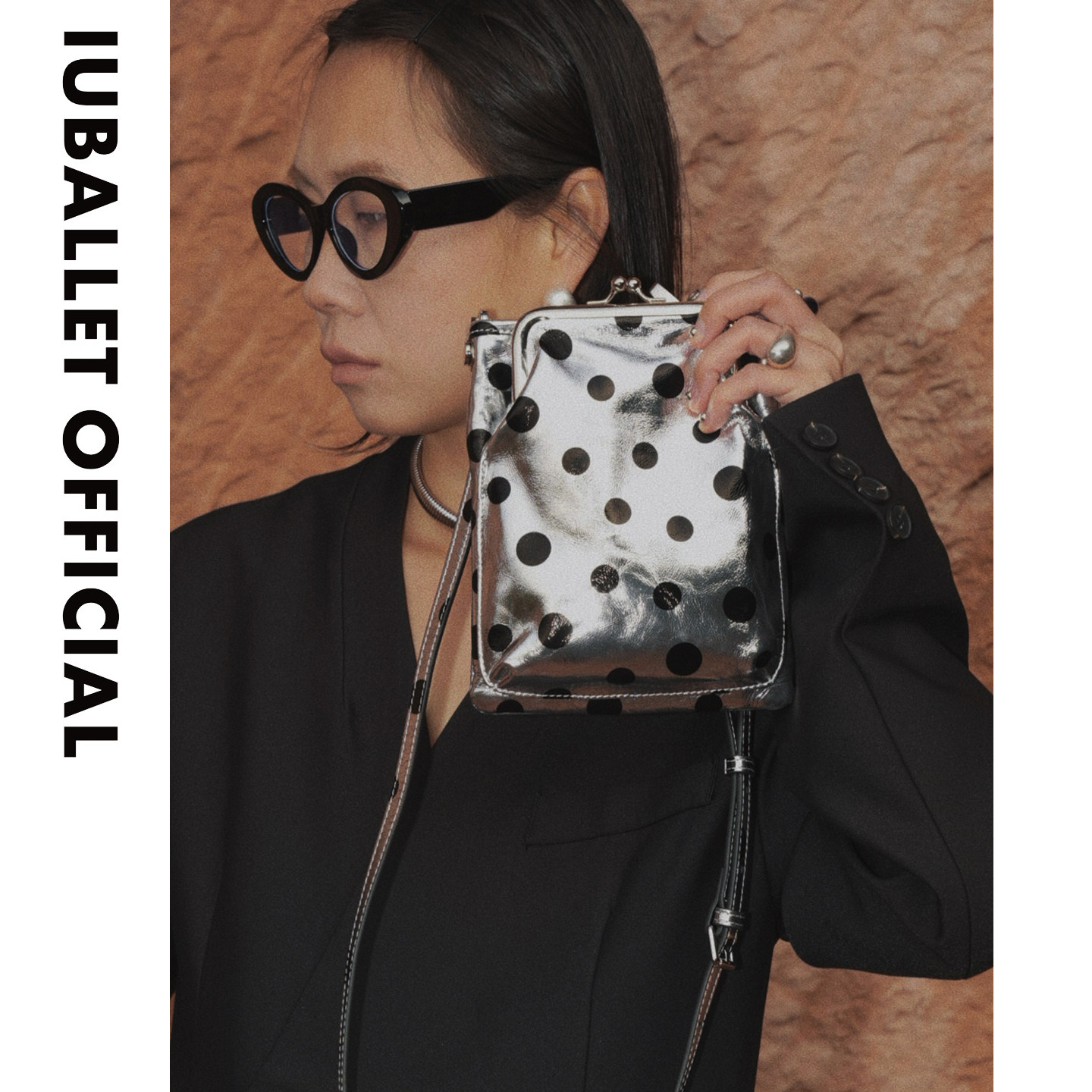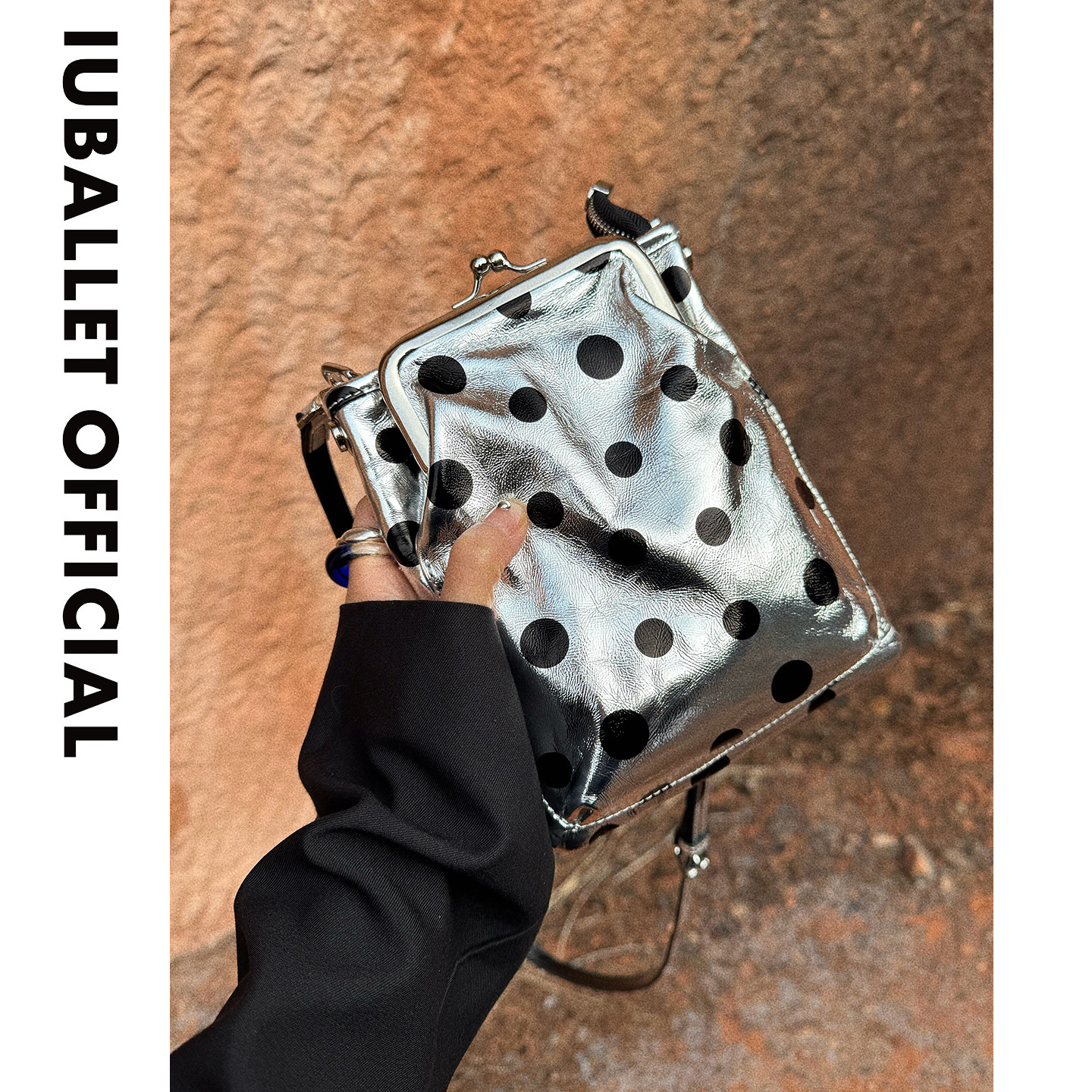 IUBALLET 斜挎包迷你小包文艺风 银色波点手机包男女通用竖款由