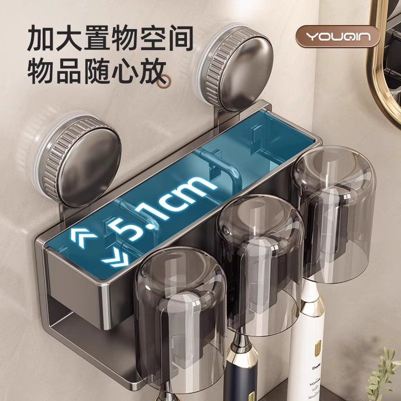 免打孔卫生间漱口杯刷牙杯牙刷架子 德国品质吸盘牙刷置物架壁挂式
