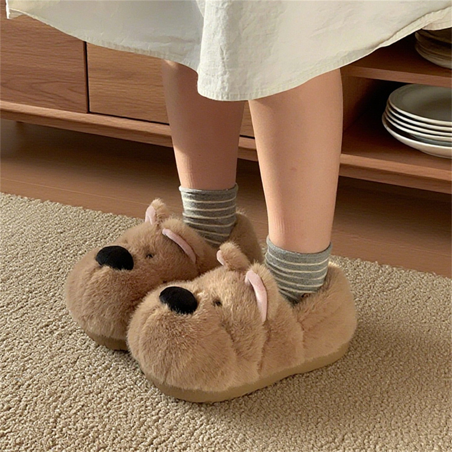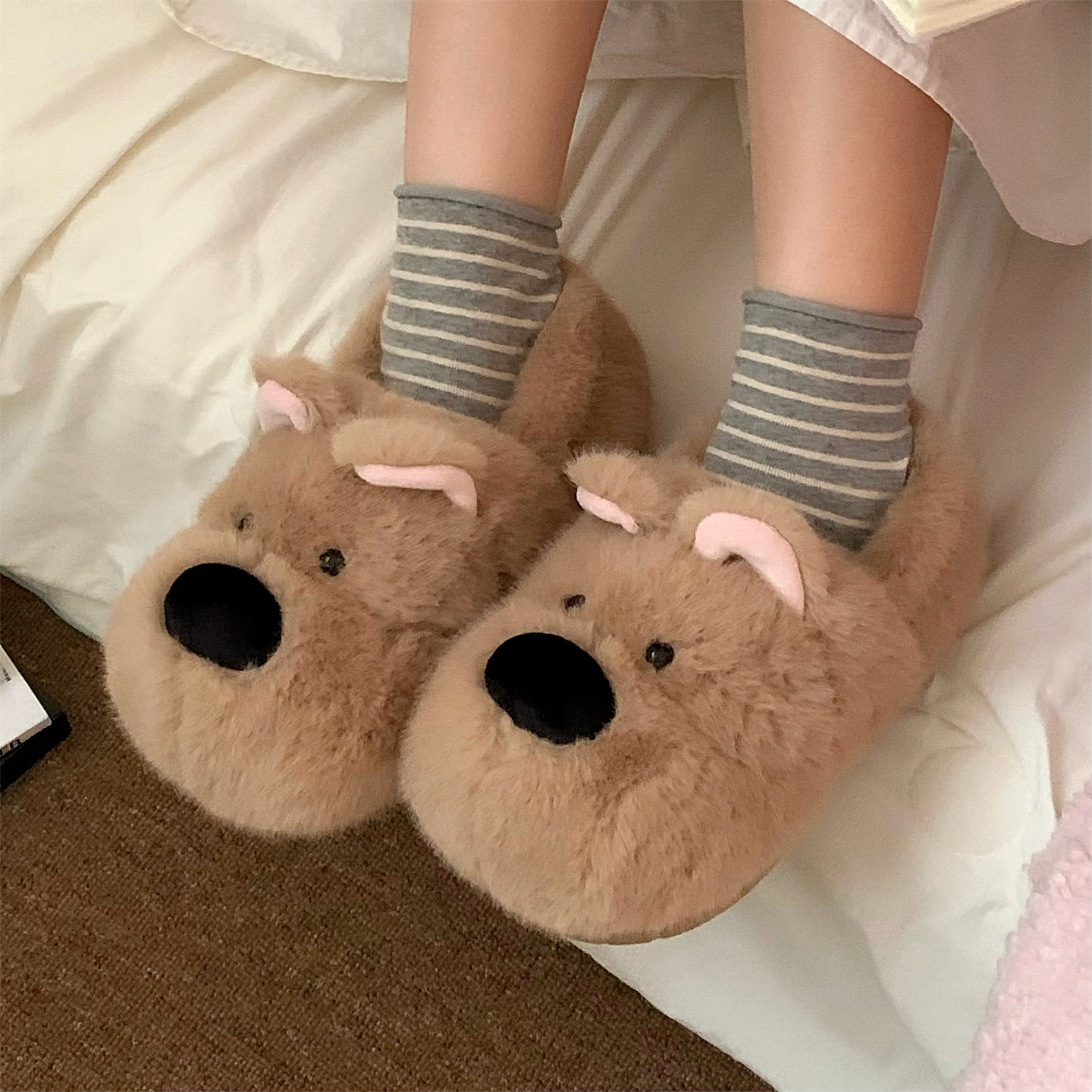 ins男女时尚 细细条 情侣棉拖鞋 可爱小狗冬季 百搭防滑居家月子棉鞋