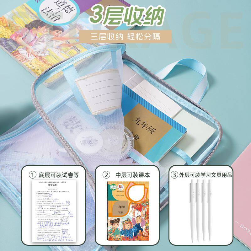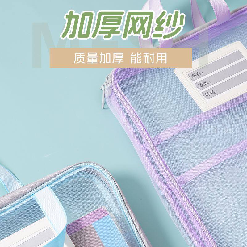 小学生初中生专用手提书袋高中生试卷资料书本作业袋子档案科目分类袋 双层大容量A4透明网纱文件收纳袋拉链式