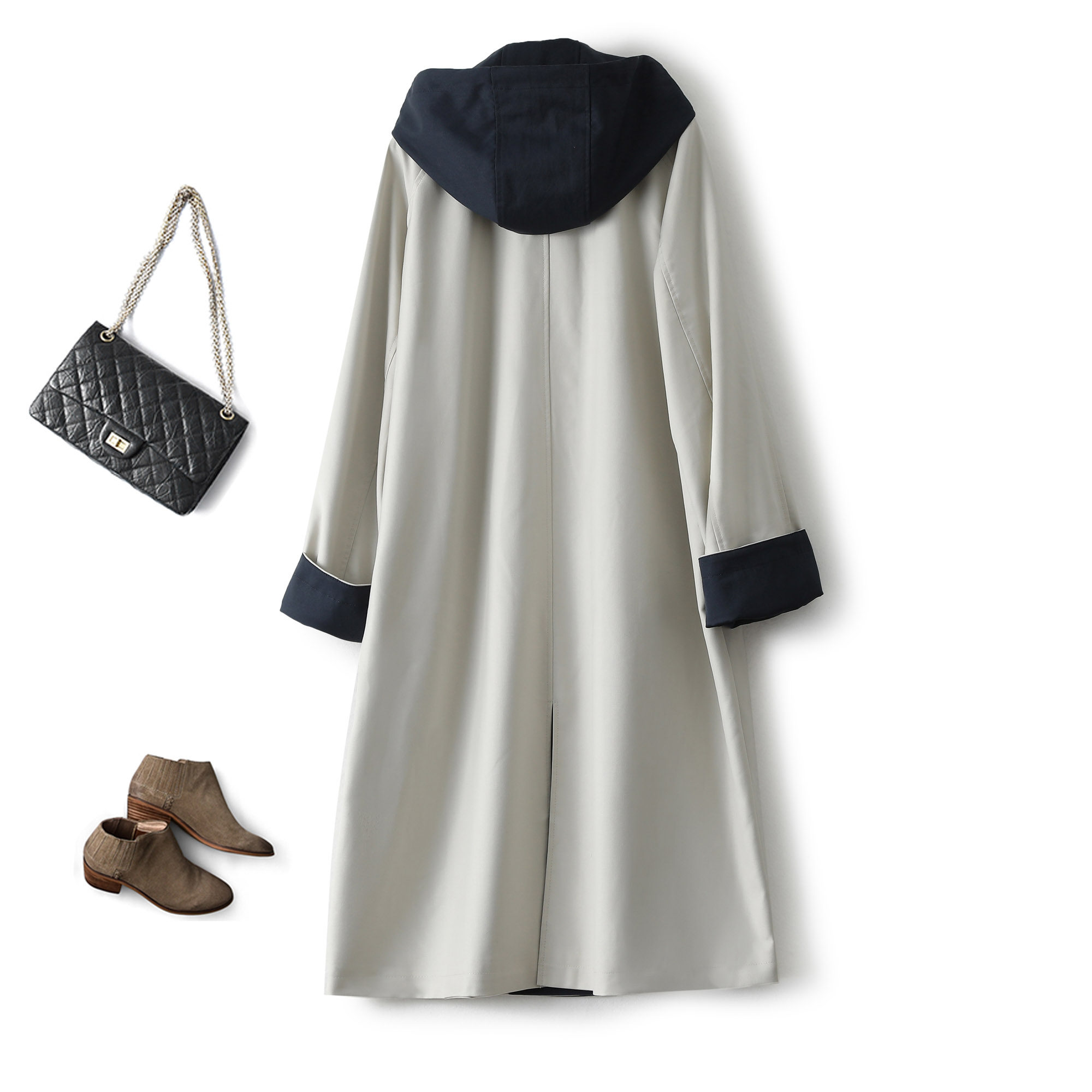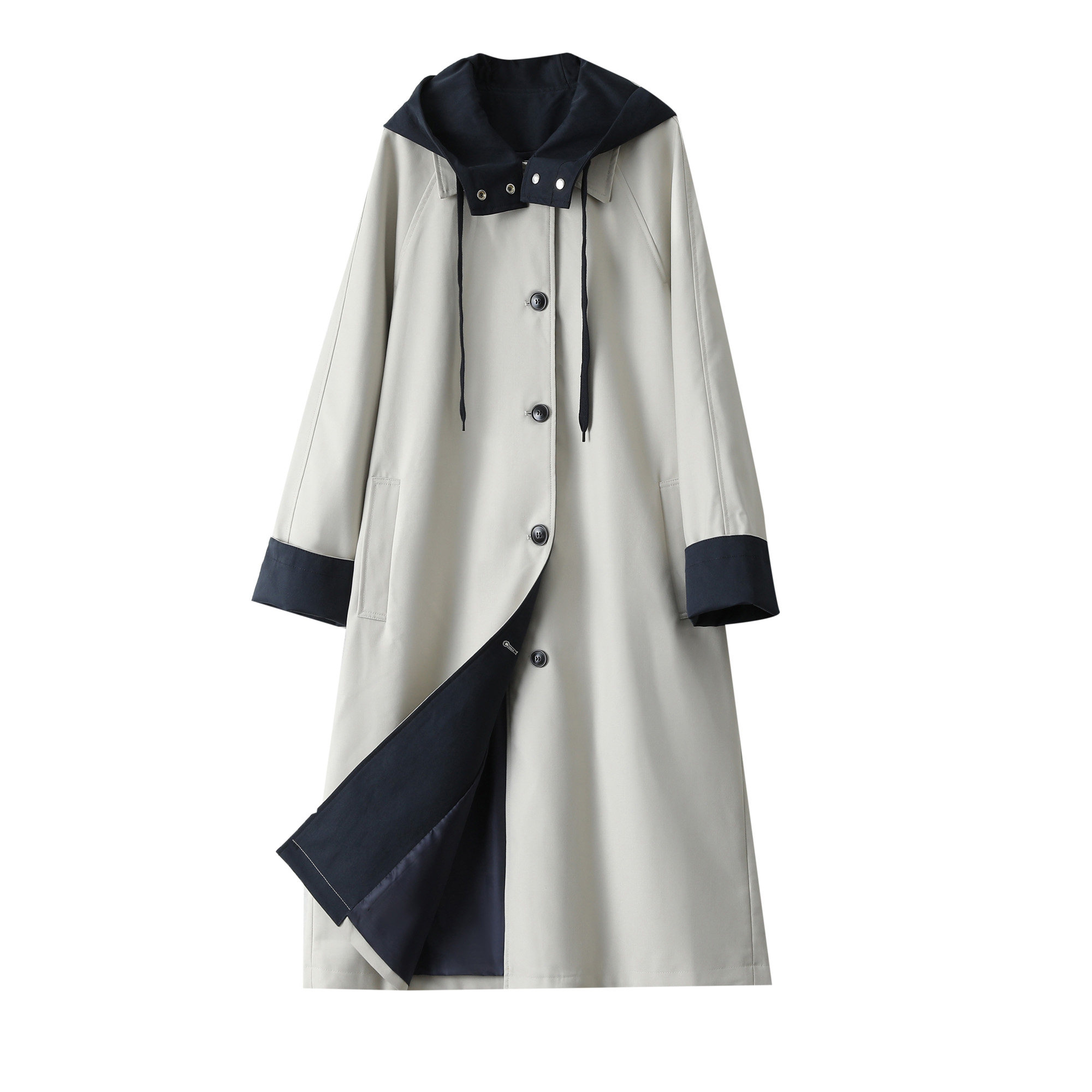 风衣单排扣撞色宽松大码 风衣 外套牛仔连帽休闲长款 秋冬女装