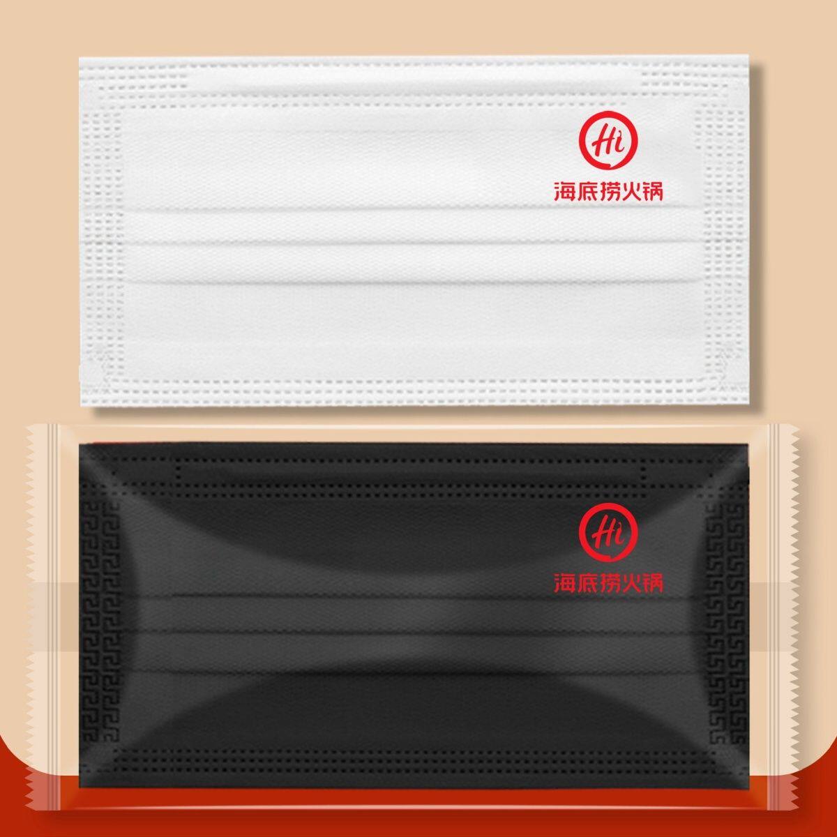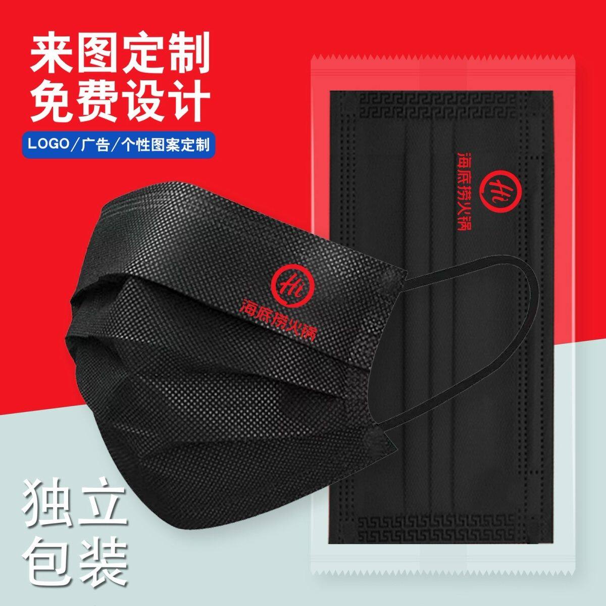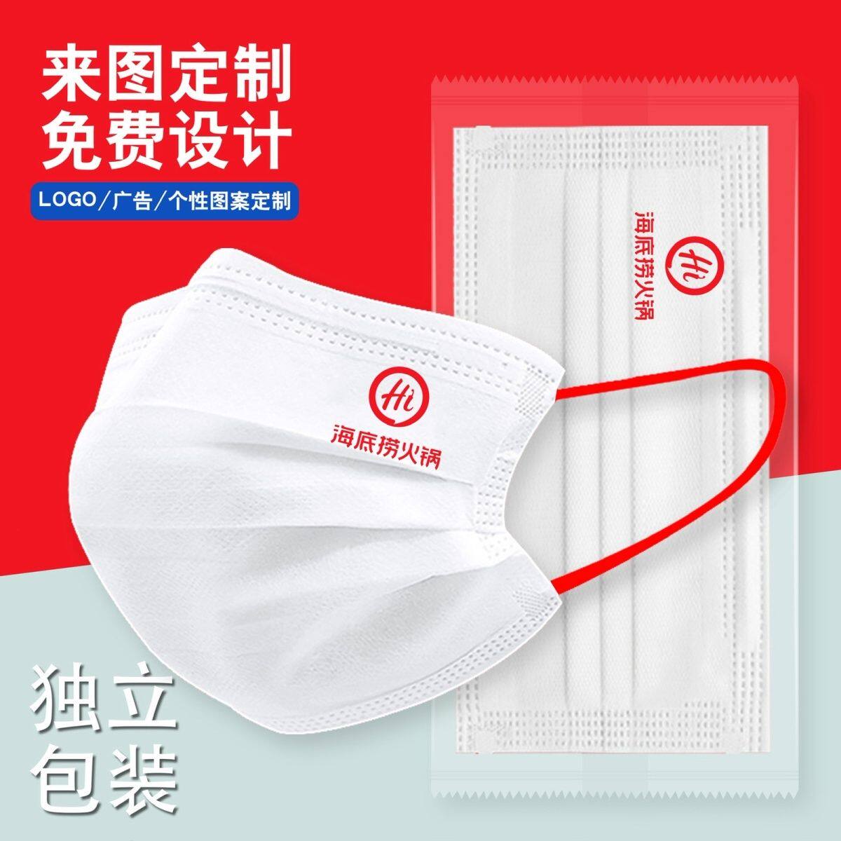 印花 海底捞口罩一次性定制logo印字三层餐饮图案防护印图独立包装