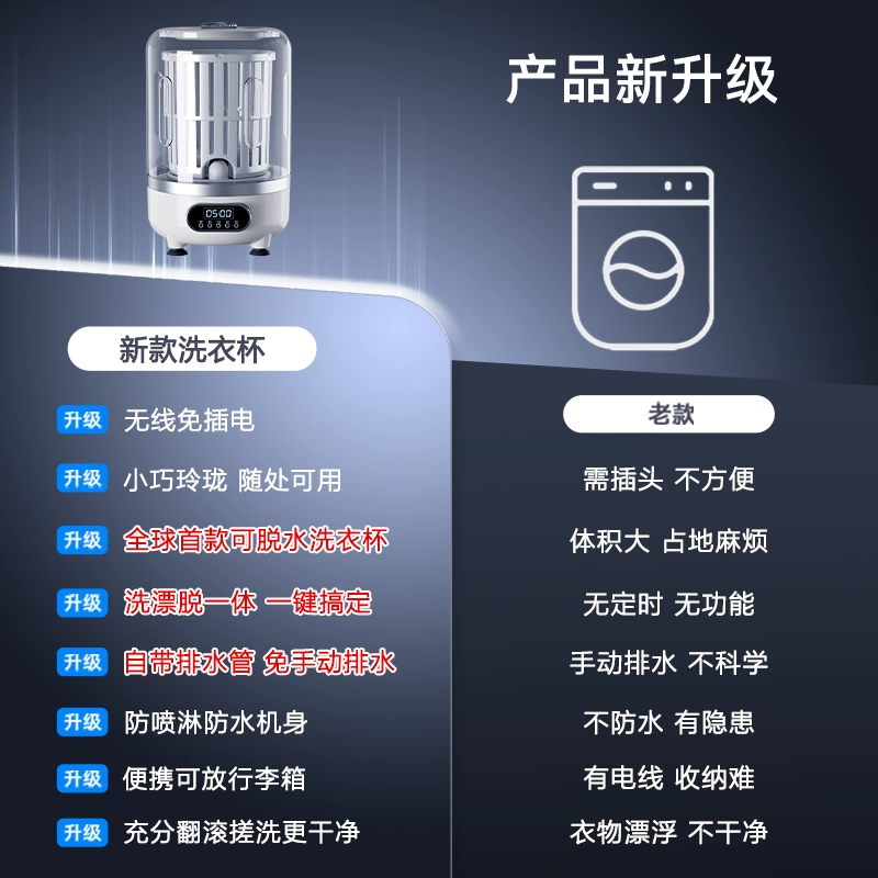 为您提供商品专用洗内衣裤 袜子洗脱一体机 洗衣杯无线迷你洗衣机免安装 裴苒新品的详细介绍,