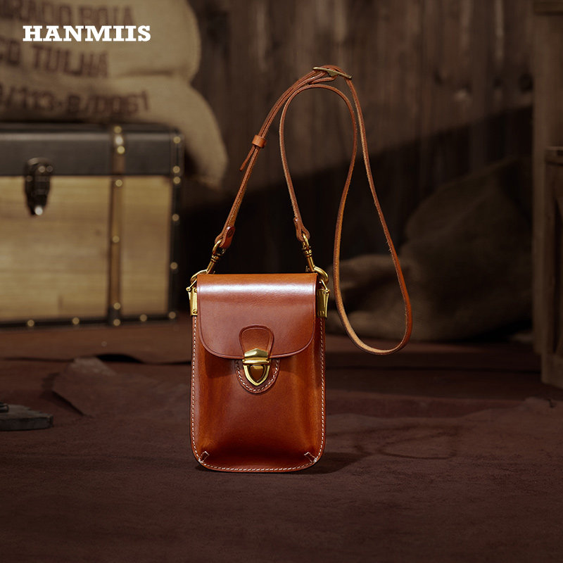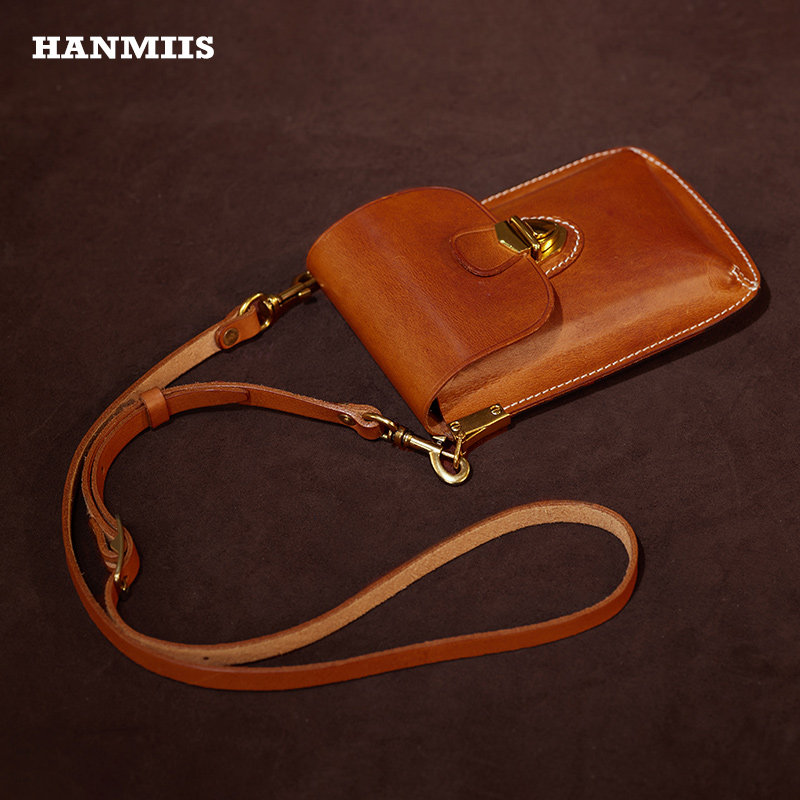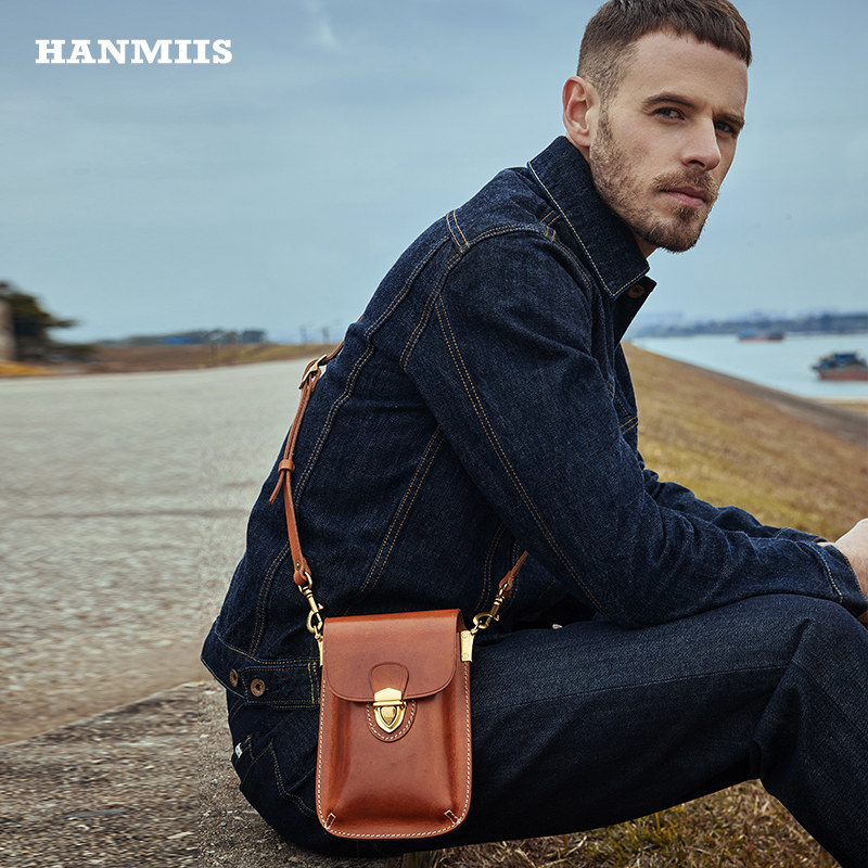 HANMIIS手机包 牛皮手机包轻便男女适合斜挎小包 树膏头层2021新款