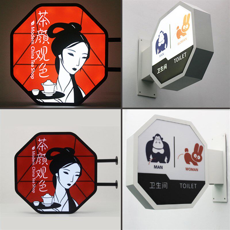 优惠价广告牌门头发光招牌定做 多边形八边形灯箱侧挂铁艺双面新款由