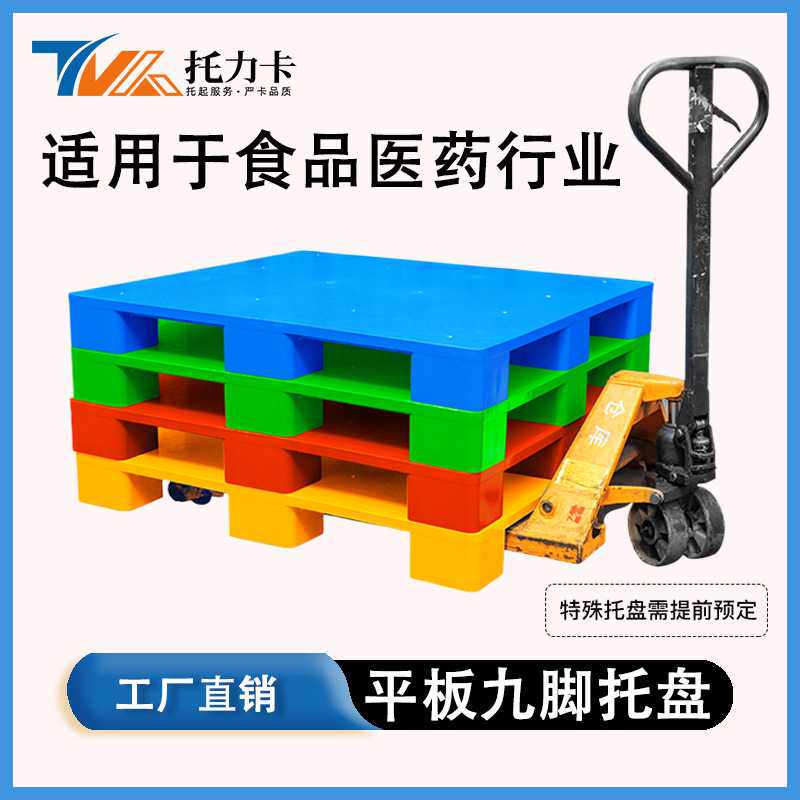 四脚平面九脚塑料卡板塑胶托盘食品超市仓库防潮垫板工业叉车拖板由