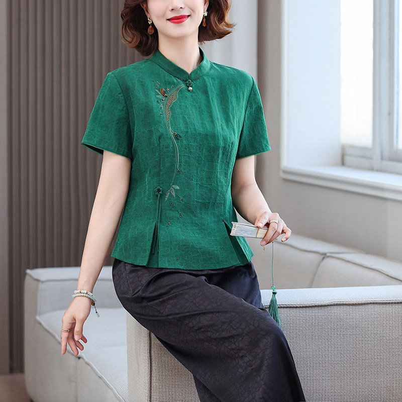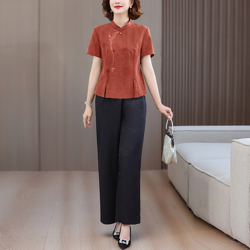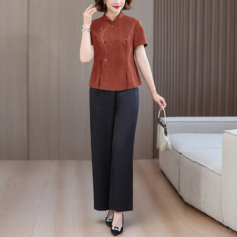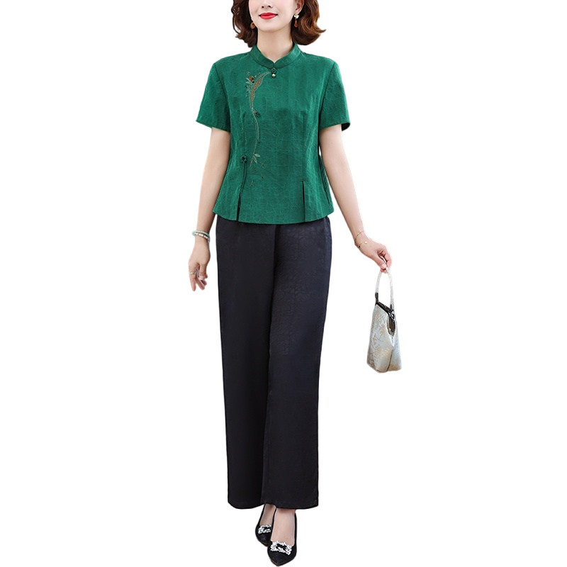 高端上衣裤 2026夏季 新款 绣花气质妈妈两件套新中式 子香云纱女套装由