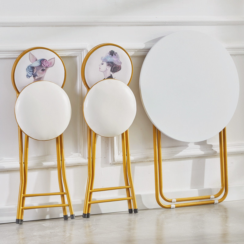 简约休闲圆桌折叠桌子家用餐桌小户型阳台白色小圆桌宿舍简易饭桌